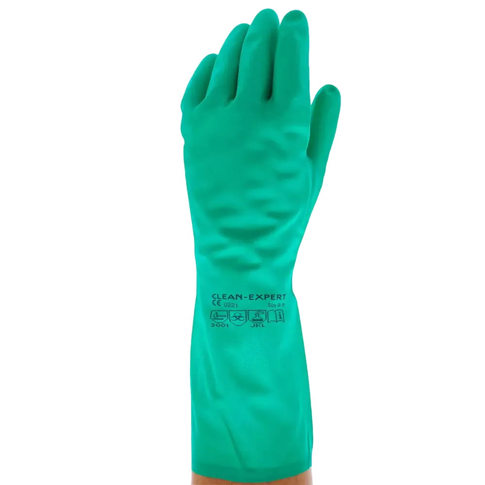 Nitrilhandschuhe bestehen aus synthetischem Kautschuk und sind öl-, fett- und chemikalienbeständig. Sie bieten guten Schutz gegen viele Lösungsmittel, Kraftstoffe und Desinfektionsmittel. Ideal bei Reinigungsarbeiten, im Gesundheitswesen und in der Lebensmittelindustrie. Einschränkung: Nicht beständig gegen Ketone (z. B. Aceton) und einige aromatische Verbindungen.